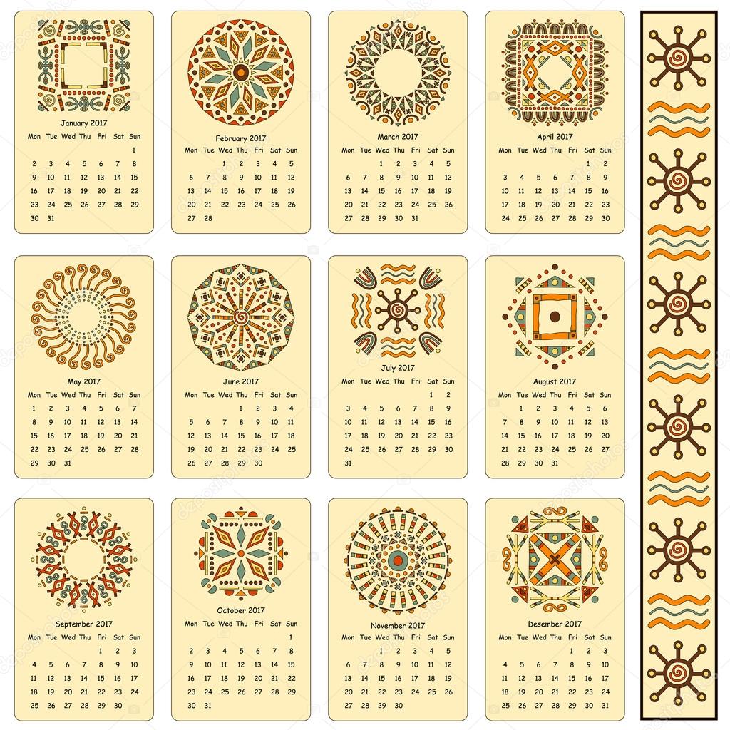 Calendar. Egyptian patterns. Cards for every month of the year