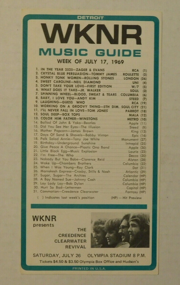 Detroit WKNR Music Guide July 17, 1969 CCR Concert Olympia | eBay