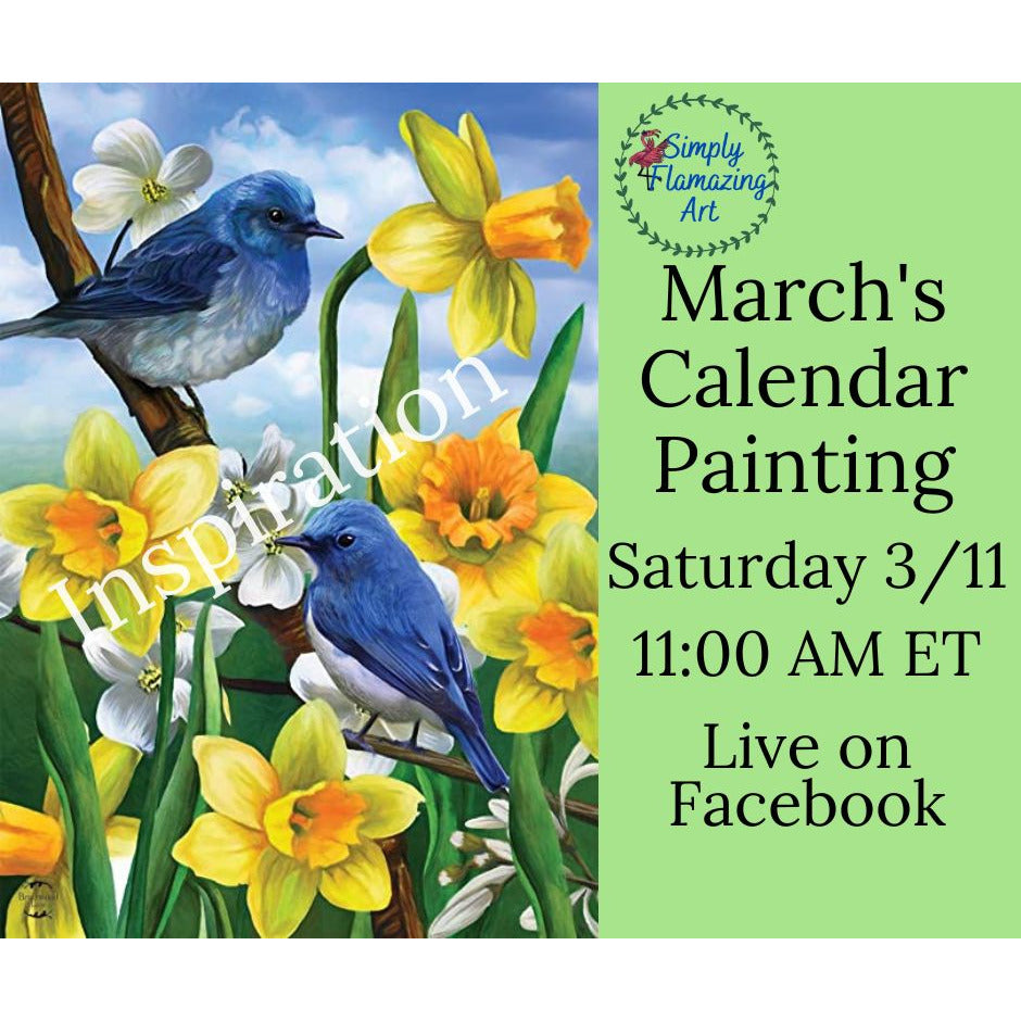 BlueBirds and Daffodils March Calendar Painting E Pattern